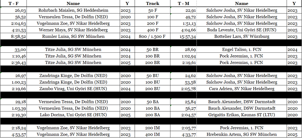 *Gewertet und prämiert werden nur die schnellste erreichte Zeit! Wird bspw. im Vorlauf ein MR erreicht und im Finallauf, dann wird nur die Zeit des Finallaufs als MR prämiert!